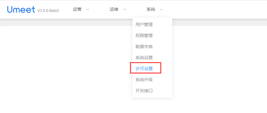 - 成功登录后台,选择【系统】-【许可设置】进入界面