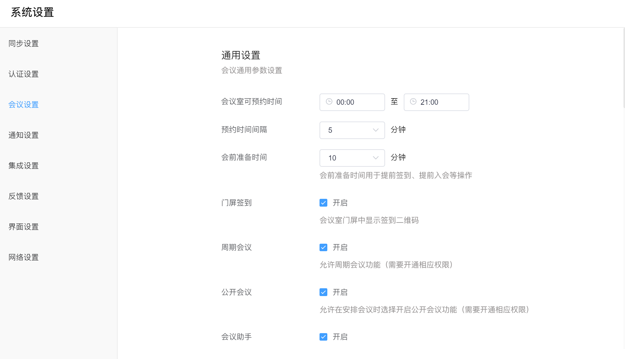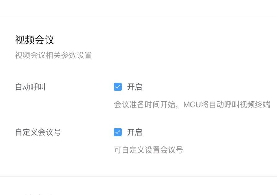 - 除此之外,根据企业需求设置其他会议相关的功能配置