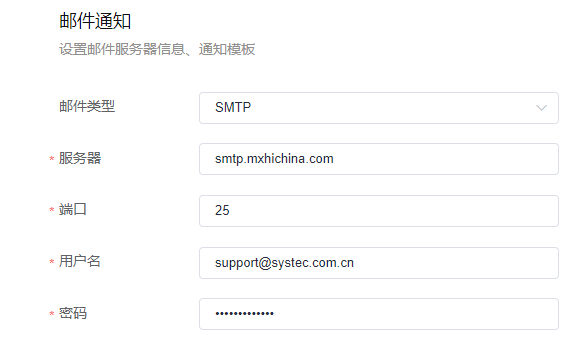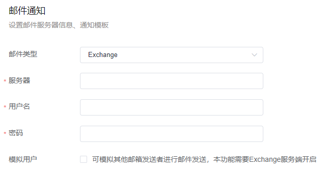 需要为企业配置邮件通知,目前3.0仅提供了STMP和exchange类型的邮件通知。