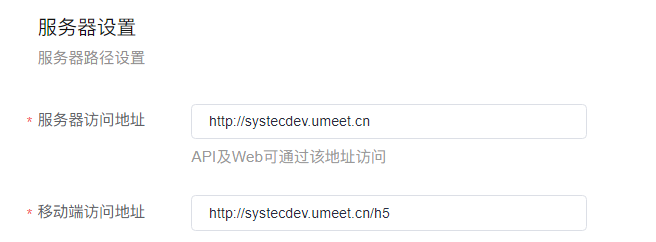 配置移动端访问地址后,则集成时可以填写该地址作为集成跳转的地址