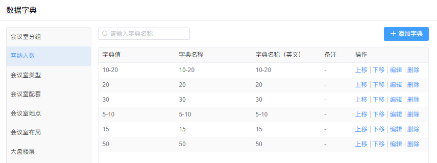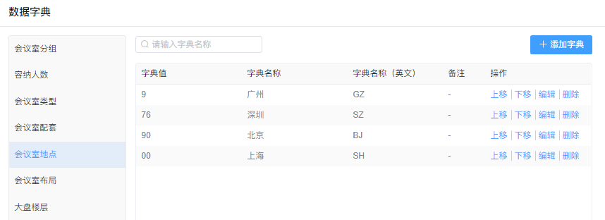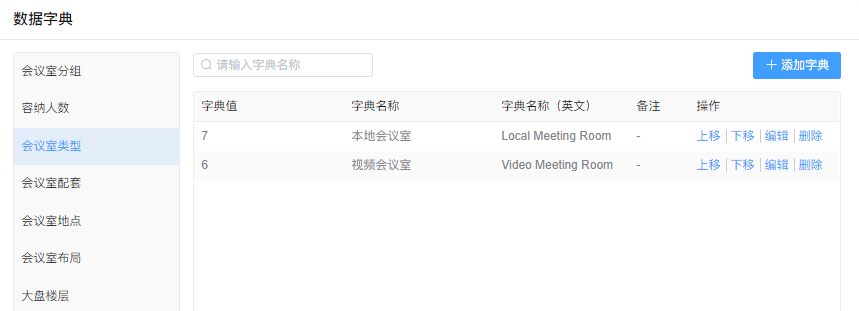 可以对会议室类型添加,编辑,删除,上下移