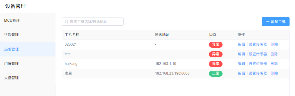 支持对热感主机进行添加,编辑和删除
