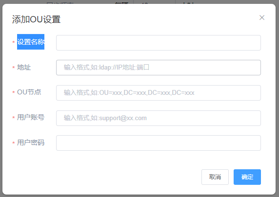 需要填写设置名称,同步的地址, OU节点,用户账号,用户密码,