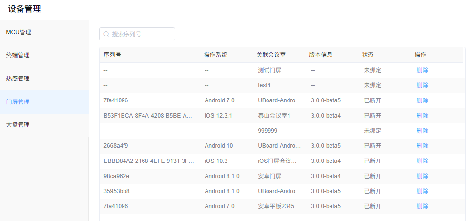 支持关联会议室设备,目前支持关联视频终端,热感及门屏