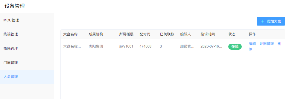 若需要关联大盘,请先到【设备管理】-【大盘管理】里绑定会议室;