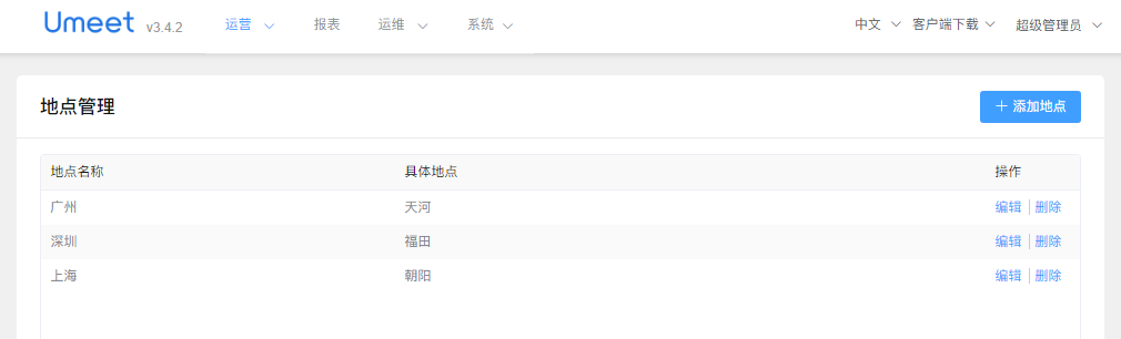 可以从【运营】-【地点管理】进入地点管理界面