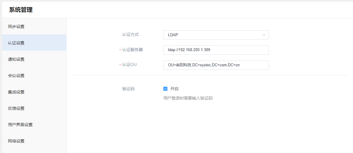 从【系统】-【系统设置】-【认证设置】进入认证界面,界面如下: