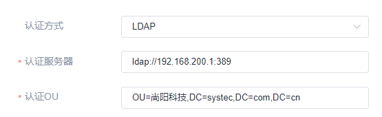 若选择LDAP方式,需要企业提供认证服务器地址和认证节点。