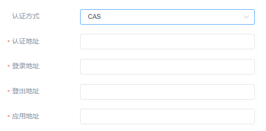 若选择CAS方式,需要企业提供认证地址,登录地址,登出地址和应用地址。