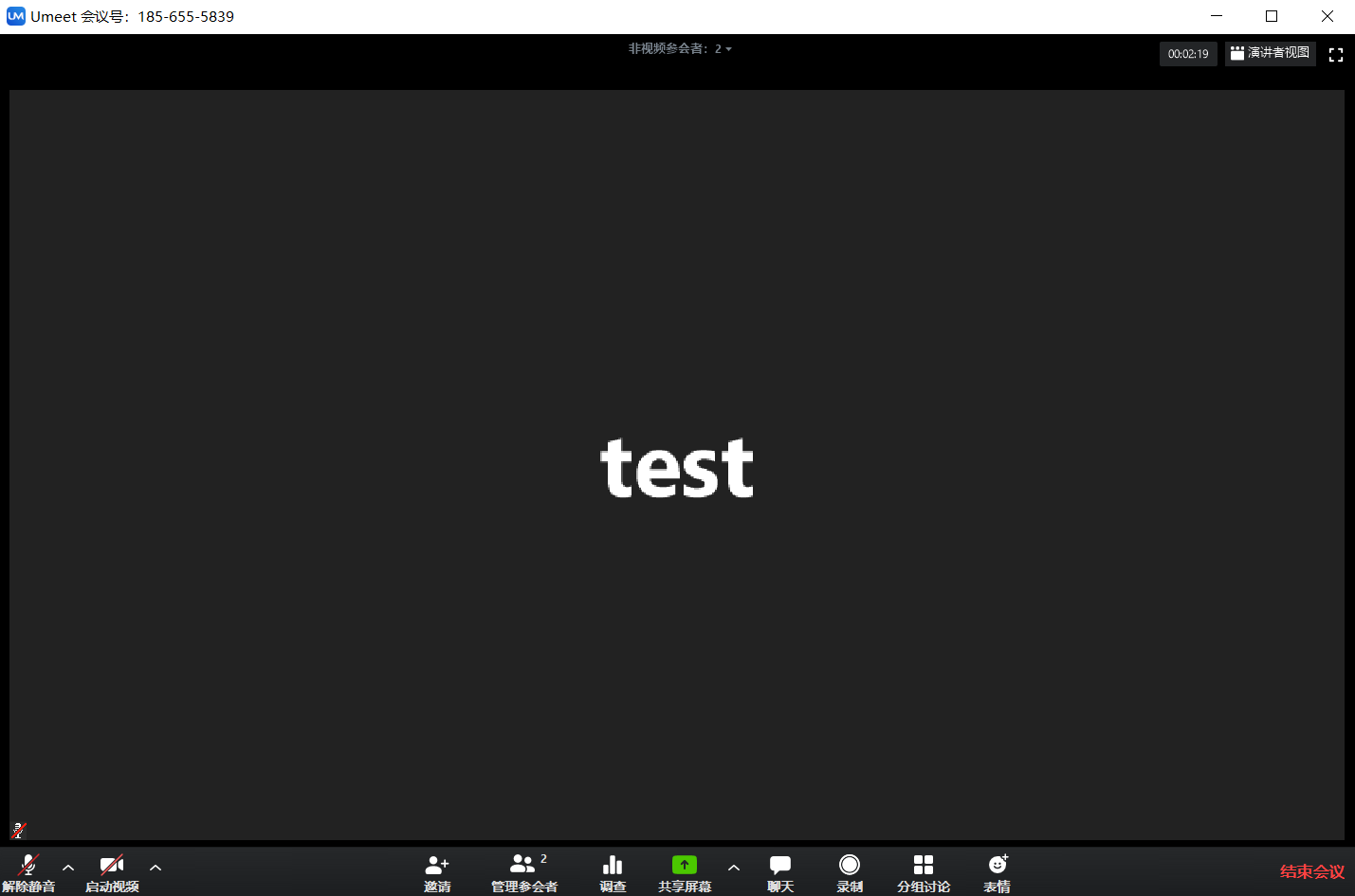 在会中界面点击"共享",选择共享屏幕或选择您具体需要共享的界面,点击"共享"则共享成功,若开启了共享电脑声音设置,参会人将可以听到您电脑系统中播放的声音